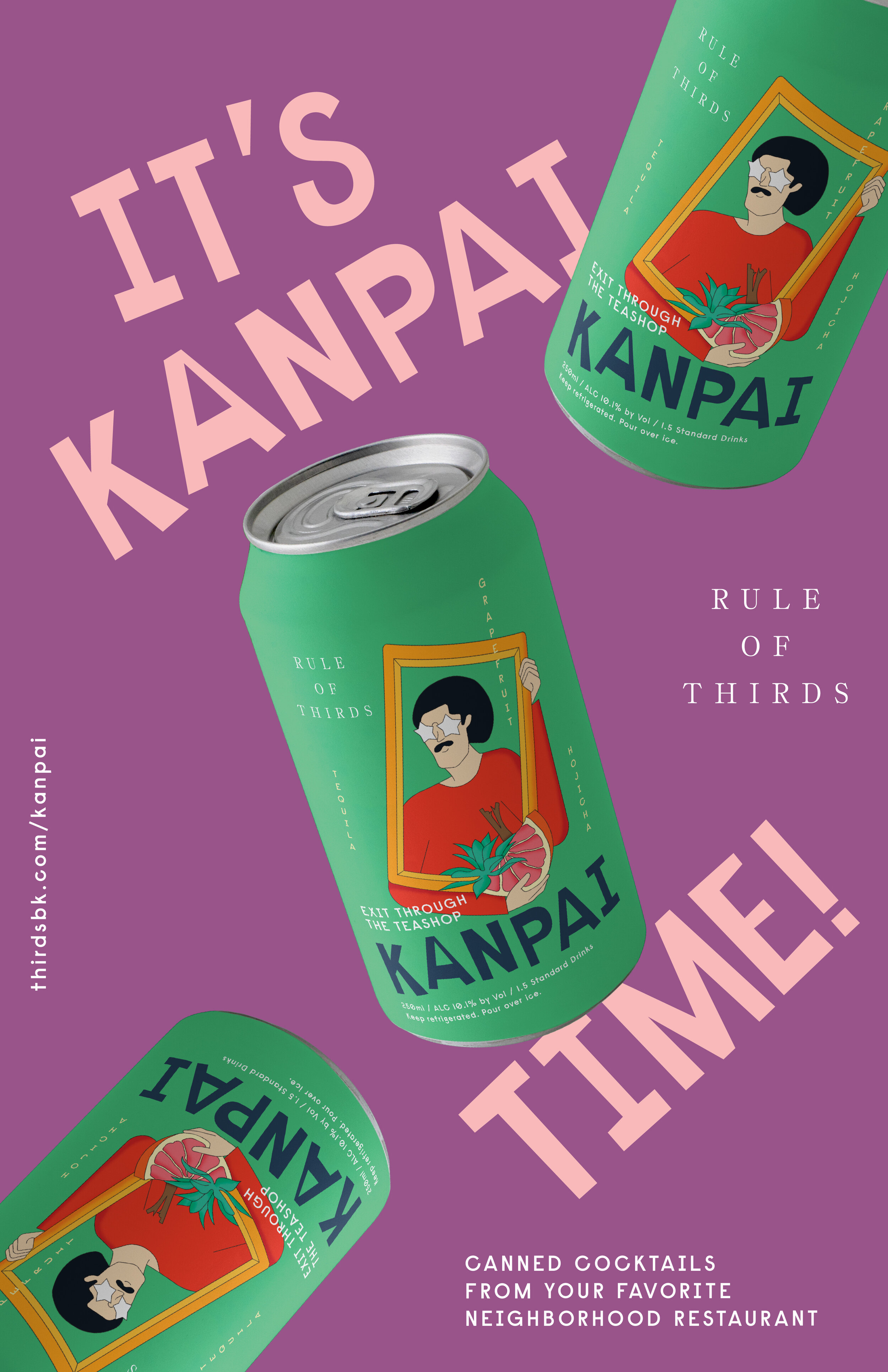Prior to the pandemic, the entire Rule of Thirds staff would come out into the dining room and declare to all visitors, "It's Kanpai Time!" Kanpai is akin to “cheers” in English, literally meaning “empty the cup.” We took this spirit of community and collective celebration as a starting point for the design, developing custom typography, illustrations, and animations that convey the restaurant team’s quirky and playful nature.